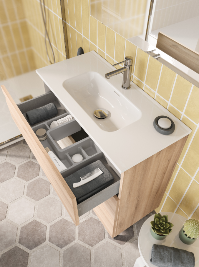Conjunto Vitale 3 cajones con patas y también disponible en 2 cajones suspendido desde 60 a 120cm